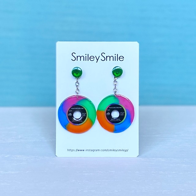アナログレコードをイメージしたハンドメイドピアス/イヤリングにNewカラーが登場。 向かう側が透き通るクリア素材のマルチカラー。 ピンク×グリーン×オレンジ×ブルーの組み合わせ。 耳元の飾りも上記の4色からお選びいただけます。 シンプルな飾りなしバージョンはこちら↓ https://smileysmile.base.shop/items/82681381 ツヤツヤの飴のような質感です。 色:クリアマルチカラー(両面同じデザインの表裏なしです) 直径:約2.8cm 耳元飾り:お4色から選びいただけます 主な素材:レジン樹脂材 ピアスフック:サージカルステンレス ピアスキャッチ:シリコン樹脂製 ネジバネ式イヤリングに変更可能です。 イヤリングをご希望の場合は、配送方法から「イヤリング(定形外郵便)」をお選びください。 金属アレルギー対応のイヤリングを希望の場合は、ご注文前にお問合せください。 --------------------------------------------------------- ※他サイトと同時販売の為、まれに在庫切れの場合が発生します。 その際は納期等ご連絡致しますがキャンセルをさせて頂く場合もあります。 ※一つ一つ丁寧に製作しておりますが、若干の歪み、凸凹や気泡等ある場合があります。ハンドメイド商品にご理解頂ける方のみお願い致します。 ※お使いのモニターの設定によって、実物と多少お色が違って見える場合がございます。 ※レーベル部分は耐水性ですが防水性ではなくデリケートなので、長時間濡らしたり傷がつかぬようお取扱いください。 ※温かかくなると変形しやすいのでお気をつけください。