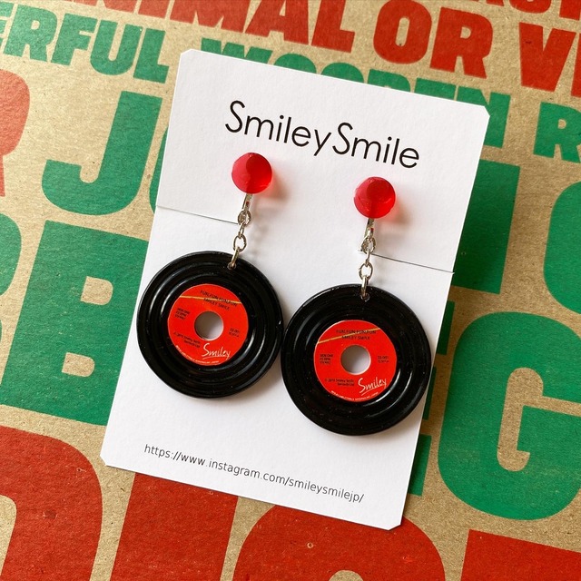 アナログレコードをイメージしたハンドメイドピアス/イヤリング。 透ける素材のクリアレッドにブラックのレーベルの組み合わせです。 音楽好きな方にはたまらないデザイン。 他では買えないオリジナルのデザインなので、プレゼントなどにもおススメです! 他のレーベルに変更も可能です。 ↓レーベル一覧はこちら http://smileysmilejapan.com/images/label_variation00.jpg レーベル変更の場合は備考欄にデザイン番号をご記載ください。 レーベル変更後のサンプルをご希望の方は、ご注文前にメッセージ等でお申し付けください。 ※表裏なしの両面同じデザインです。 イヤリングに変更の場合はパーツ選択からイヤリング(+100円)をお選びください。 色:クリアレッド 直径:約2.9cm 主な素材:レジン樹脂材 ピアスパーツは無料で金属アレルギー対応に交換可能です。 (ご希望の方は備考欄にその旨ご記載ください。お時間をいただく場合がございます。) 不明点がございましたら、気軽にメッセージしてください。 イヤリングはネジバネ式(ニッケルフリー)となります。 不明点がございましたら、気軽にメッセージしてください。 --------------------------------------------------------- ※他サイトと同時販売の為、まれに在庫切れの場合が発生します。 その際は納期等ご連絡致しますがキャンセルをさせて頂く場合もあります。 ※一つ一つ丁寧に製作しておりますが、若干の歪み、凸凹や気泡等ある場合があります。ハンドメイド商品にご理解頂ける方のみお願い致します。 ※お使いのモニターの設定によって、実物と多少お色が違って見える場合がございます。 ※レーベル部分は耐水性ですが防水性ではなくデリケートなので、長時間濡らしたり傷がつかぬようお取扱いください。 ※温かかくなると変形しやすいのでお気をつけください。