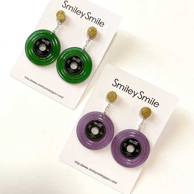 アナログレコードをイメージしたハンドメイドピアスにくすみカラーが登場しました。 カラーはクリア(くすみ)パープルとクリア(くすみ)グリーンの2色。 どちらのカラーも透明感のあるクリア素材です。 耳元のゴールドのグリッターのモチーフとくすみカラーの組み合わせがGood! くるくると回るレコードをイメージした溝もポイント。 音楽好きな方にはたまらないデザインです。 他では買えないオリジナルのデザインなので、プレゼントなどにもおススメ。 ※表裏なしの両面同じデザインです。 2種のカラーからお選びください。 ・クリア(くすみ)パープル ・クリア(くすみ)グリーン ピアスパーツには金属アレルギー対応のサージカルステンレスを使用しています。 イヤリングに変更の場合はパーツ選択からイヤリングをお選びください。 イヤリングはネジバネ式(ニッケルフリー)となります。 直径:約2.9cm 主な素材:レジン樹脂材 ピアスパーツ:サージカルステンレス ネジバネ式イヤリング:ニッケルフリー ↓つやつやレコードバージョンはこちらから https://smileysmile.base.shop/items/63328019 不明点がございましたら、気軽にメッセージしてください。 --------------------------------------------------------- ※他サイトと同時販売の為、まれに在庫切れの場合が発生します。 その際は納期等ご連絡致しますがキャンセルをさせて頂く場合もあります。 ※一つ一つ丁寧に製作しておりますが、若干の歪み、凸凹や気泡・色ムラ等ある場合があります。ハンドメイド商品にご理解頂ける方のみお願い致します。 ※お使いのモニターの設定によって、実物と多少お色が違って見える場合がございます。 ※レーベル部分は耐水性ですが防水性ではなくデリケートなので、長時間濡らしたり傷がつかぬようお取扱いください。 ※温かかくなると変形しやすいのでお気をつけください。