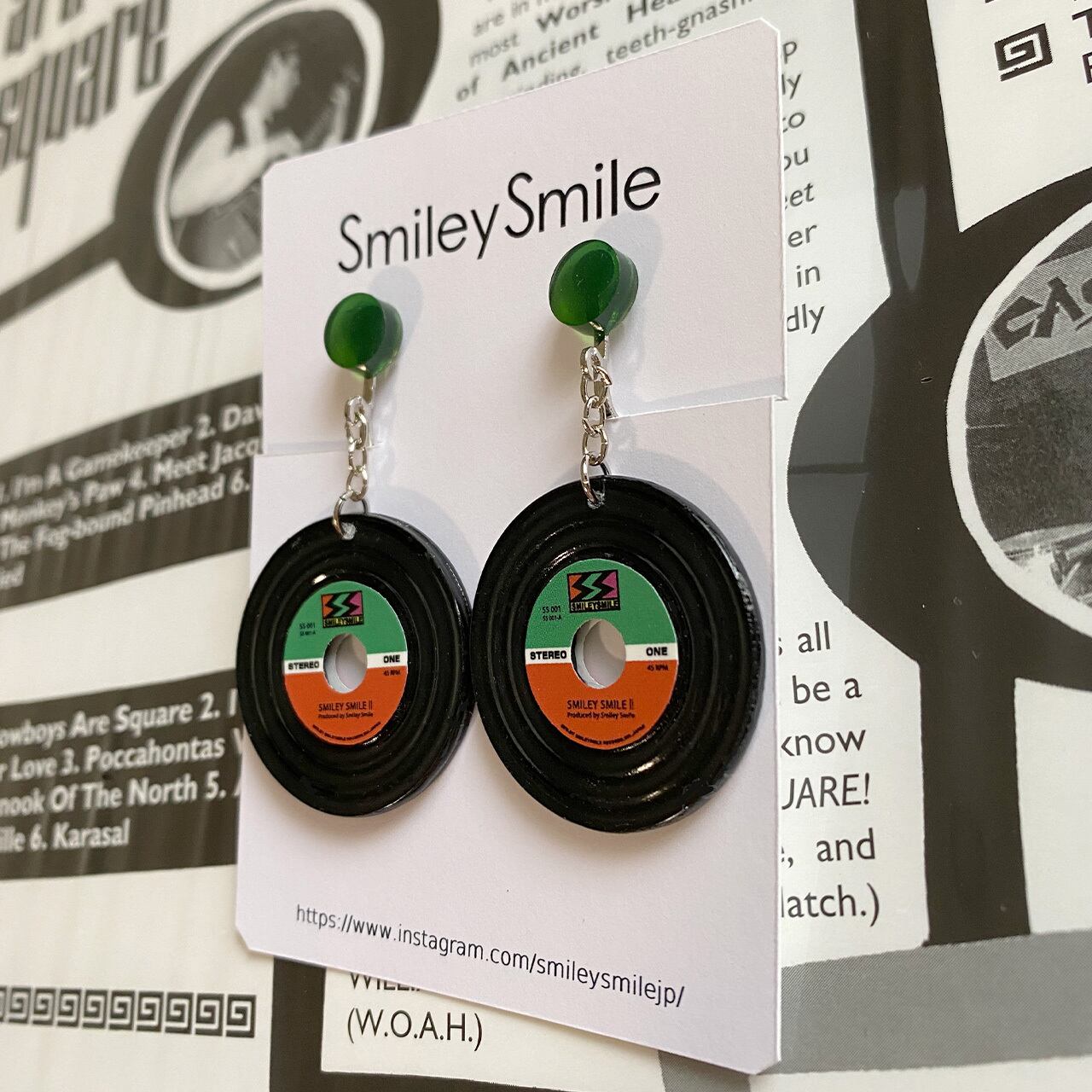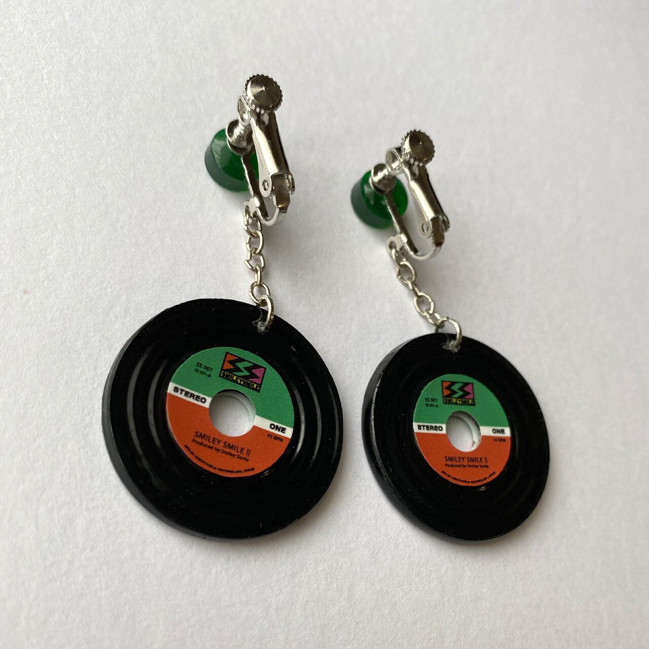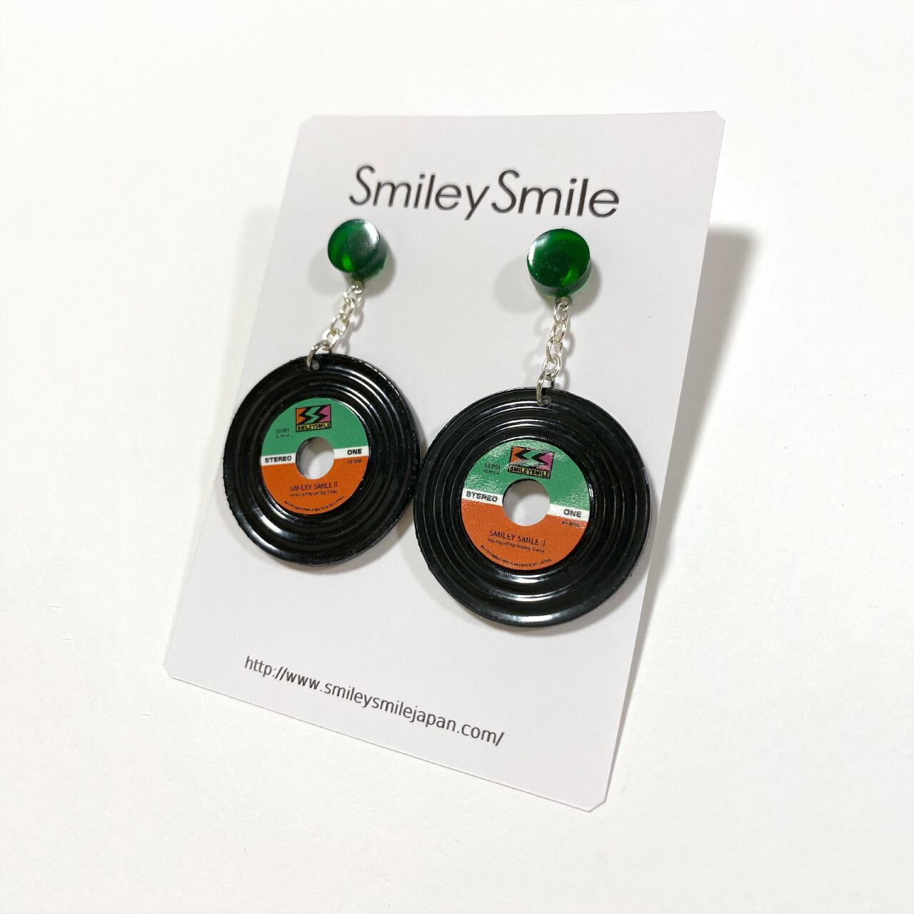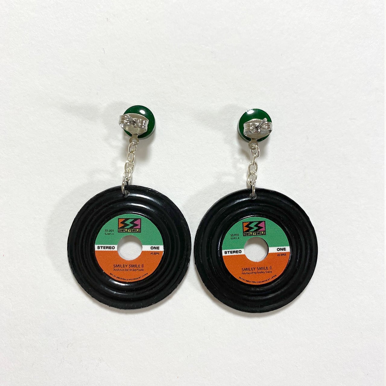 アナログレコードピアス/イヤリング ブラック02【溝あり・飾り付き】