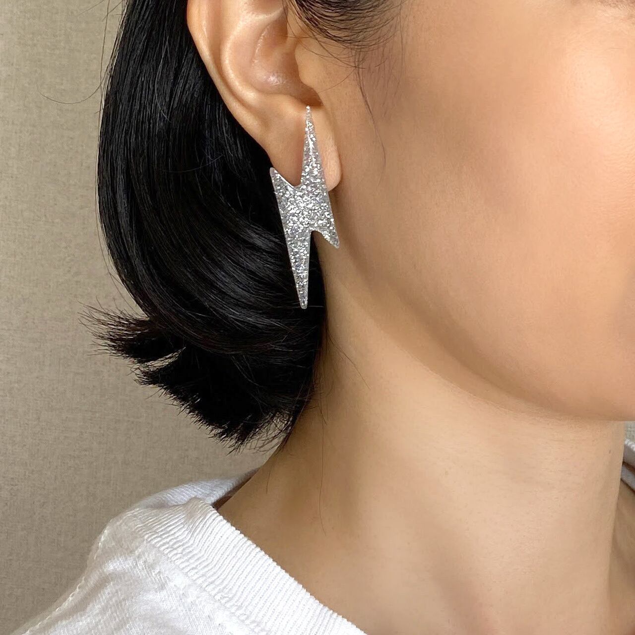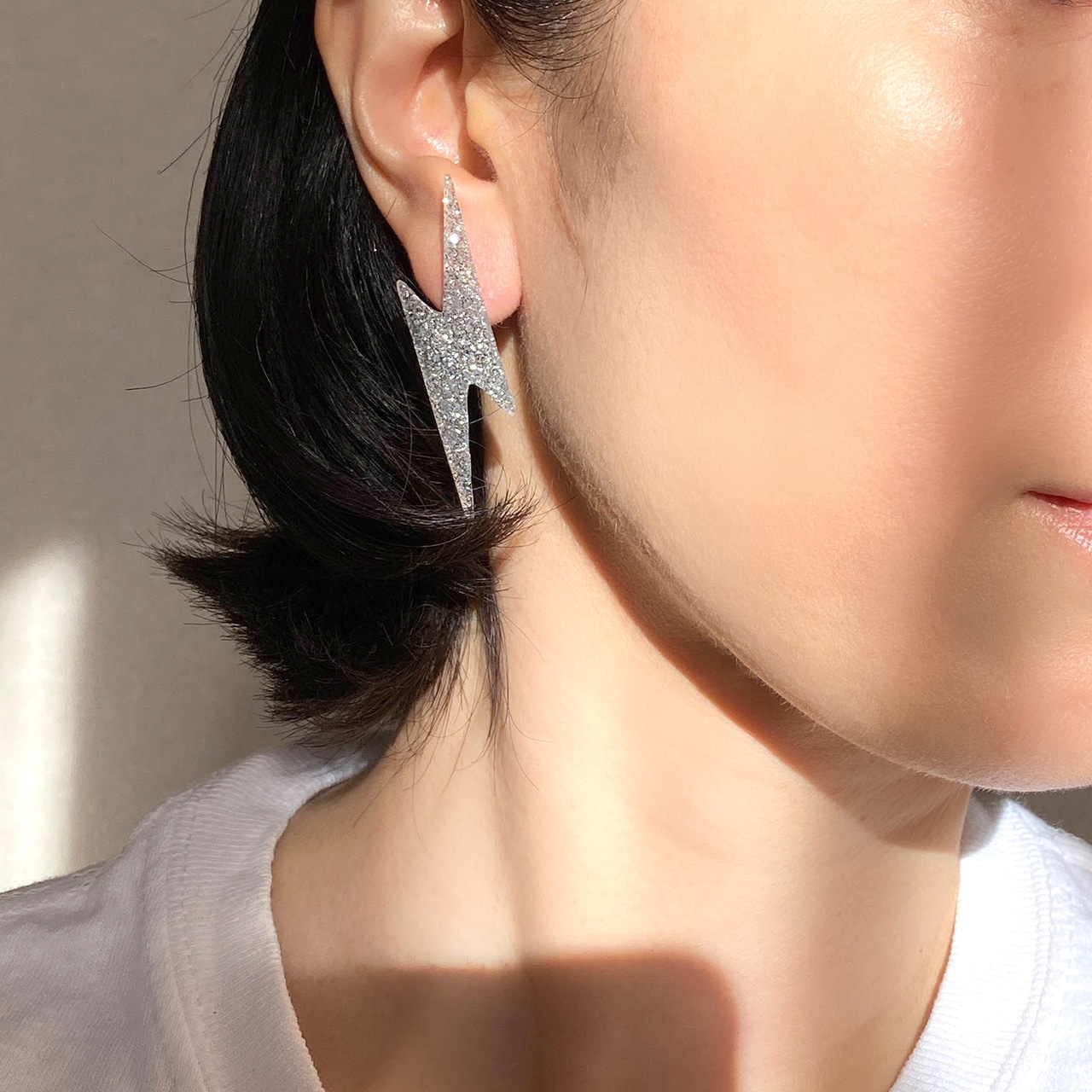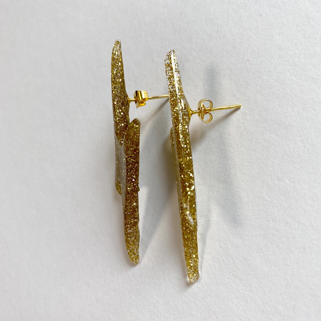 イナズマレジンのピアス/イヤリング グリッターラメ シルバー/ゴールド