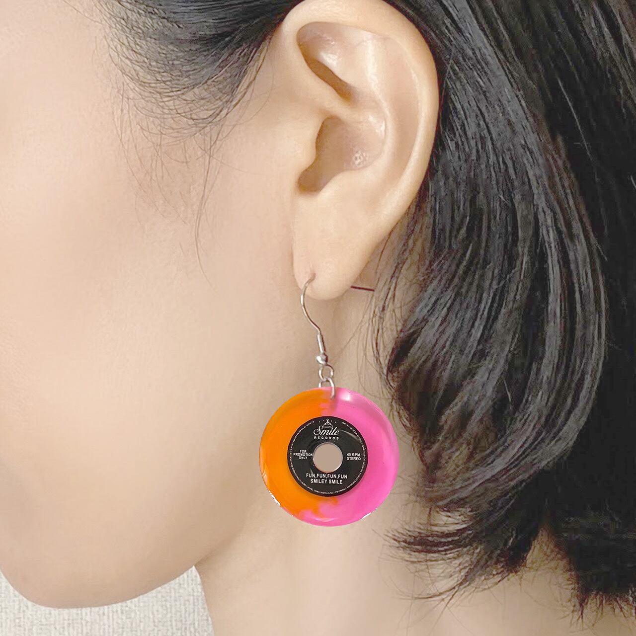 【全17種】つやつやレコードピアス/イヤリング クリアピンク×オレンジ