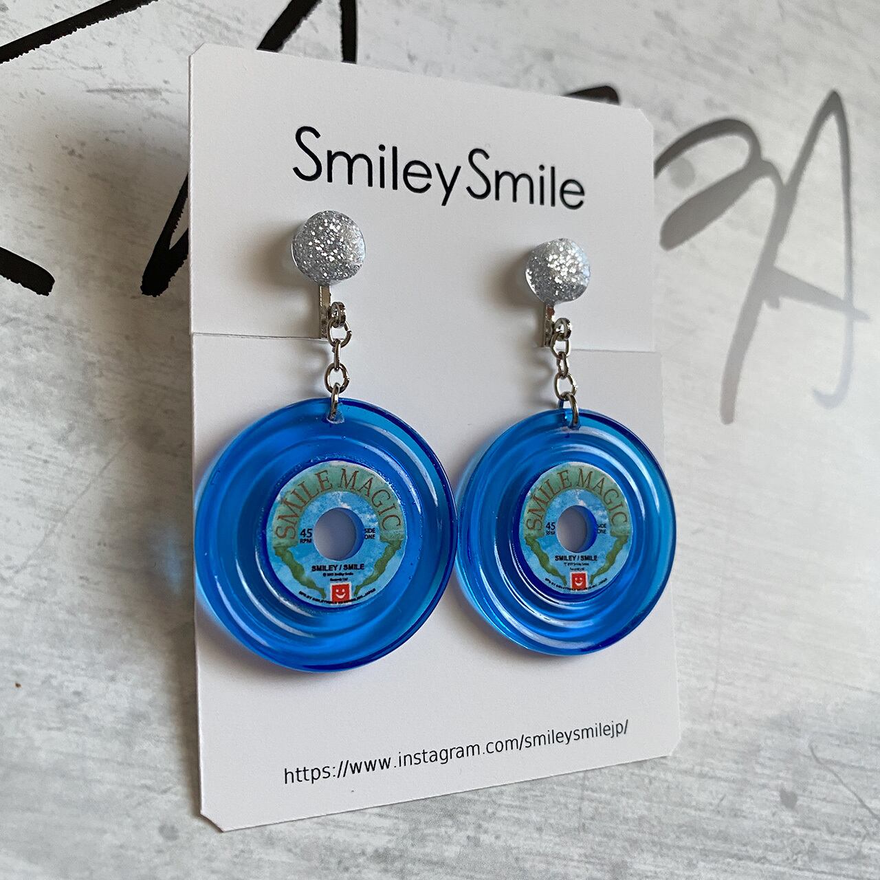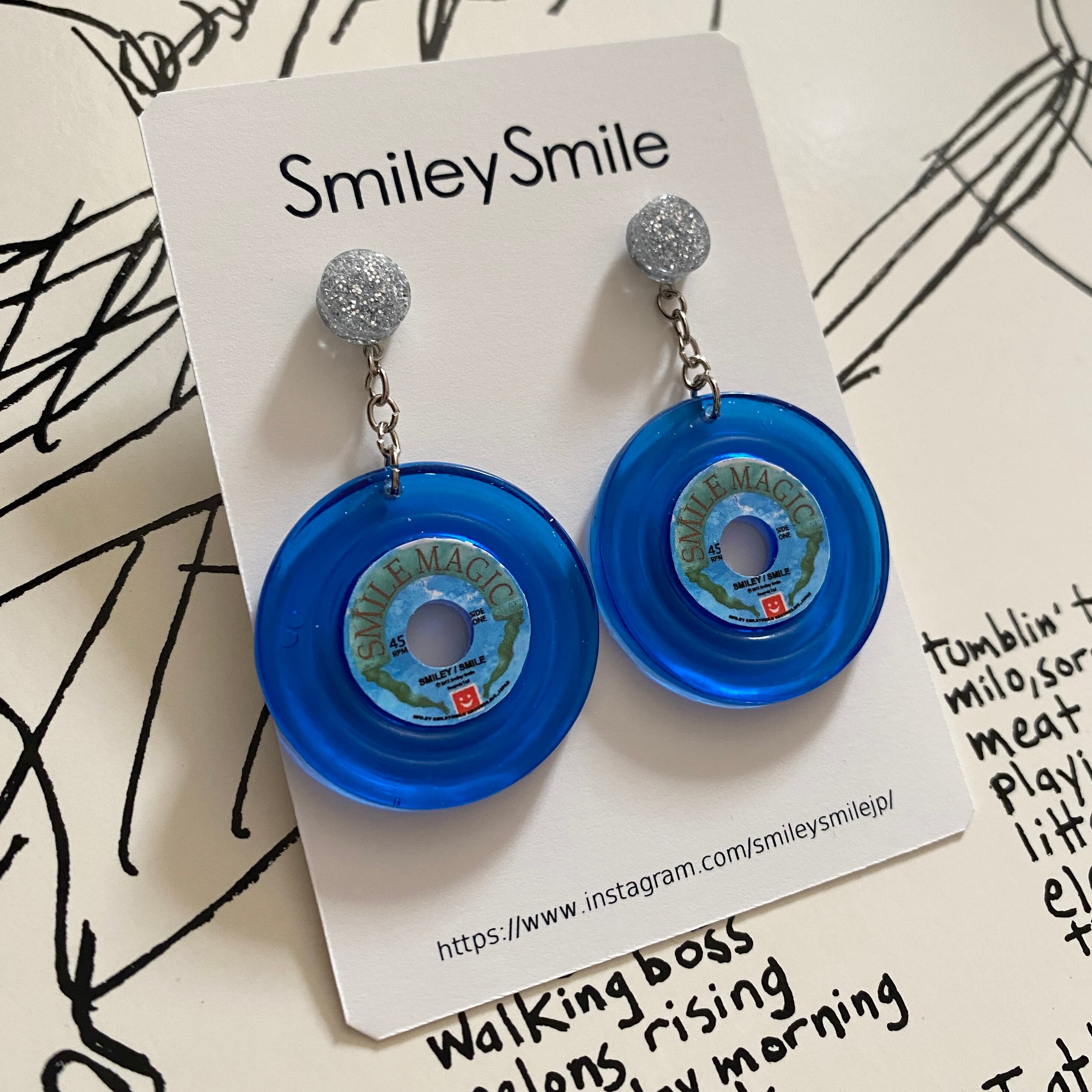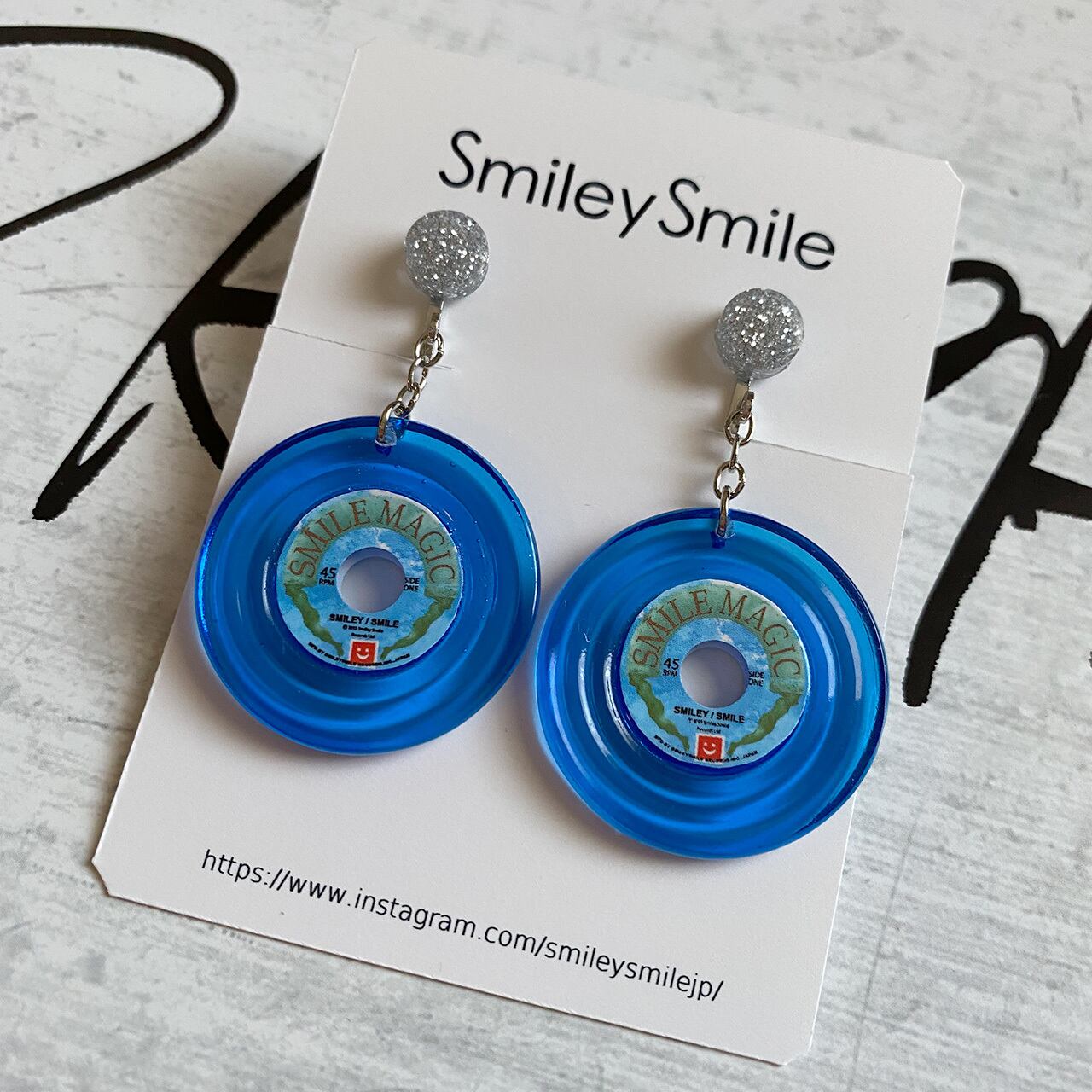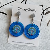 アナログレコードピアス/イヤリング クリアブルー18【溝あり・飾り付き】