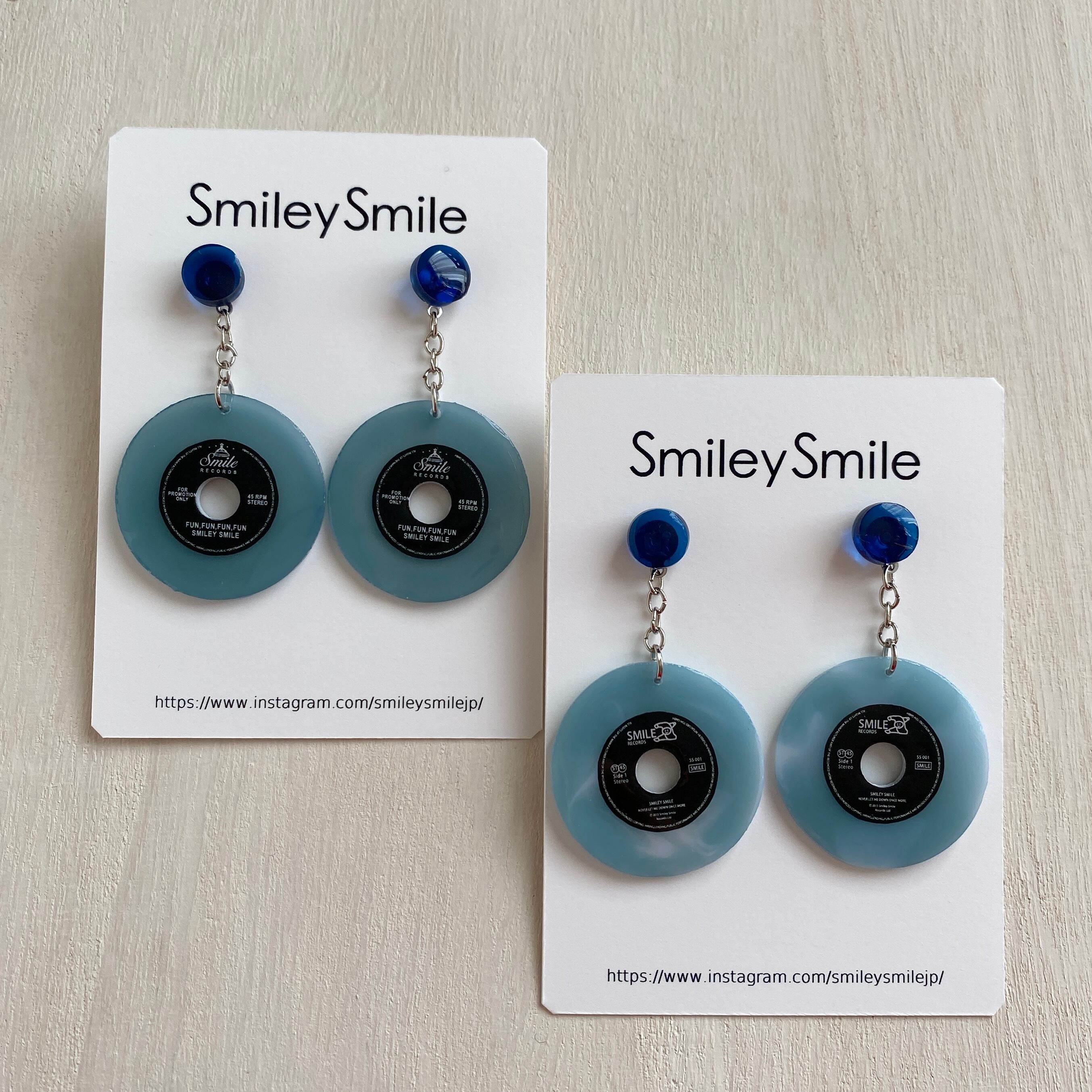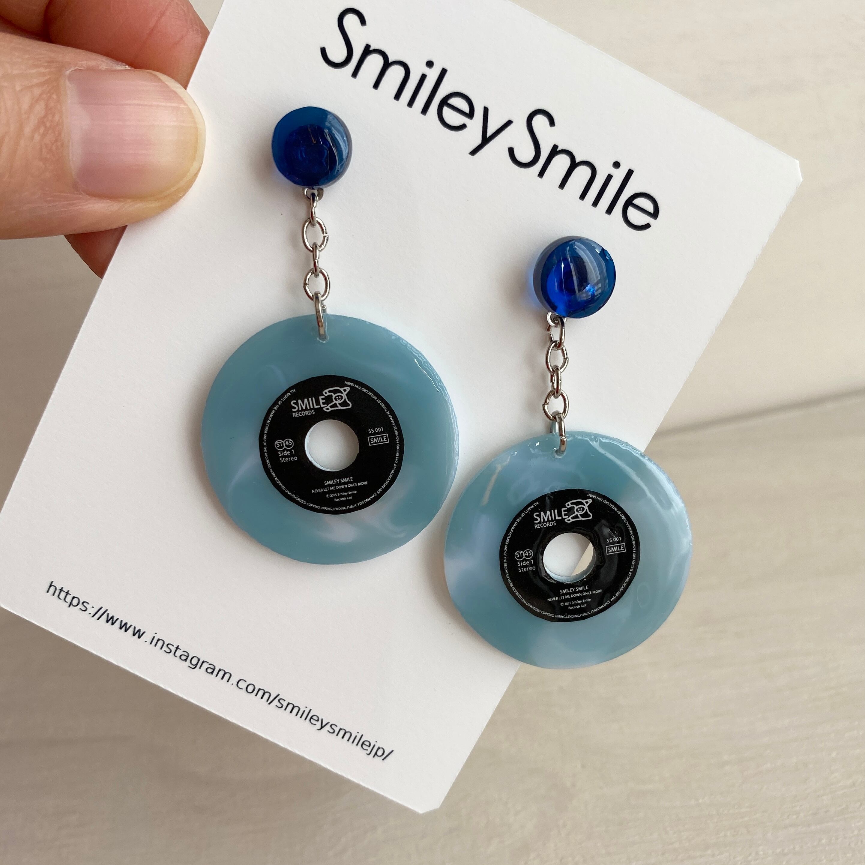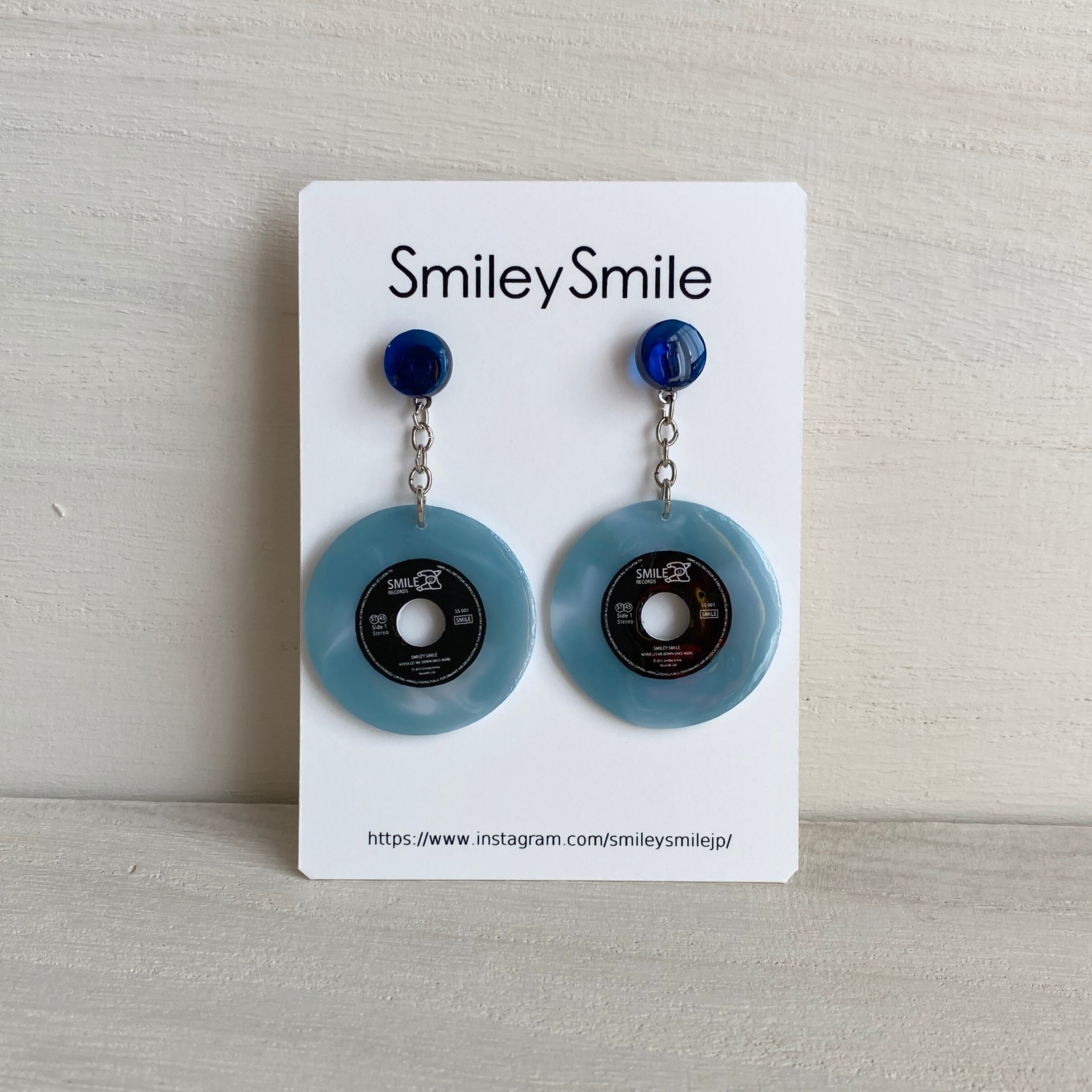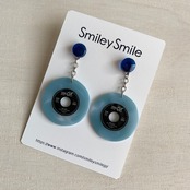 レコードピアス/イヤリング マーブルくすみブルー23【飾り付き•金属アレルギー対応】