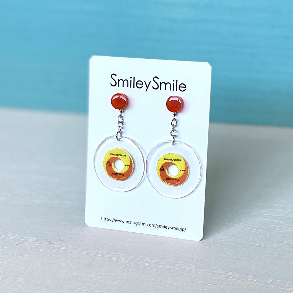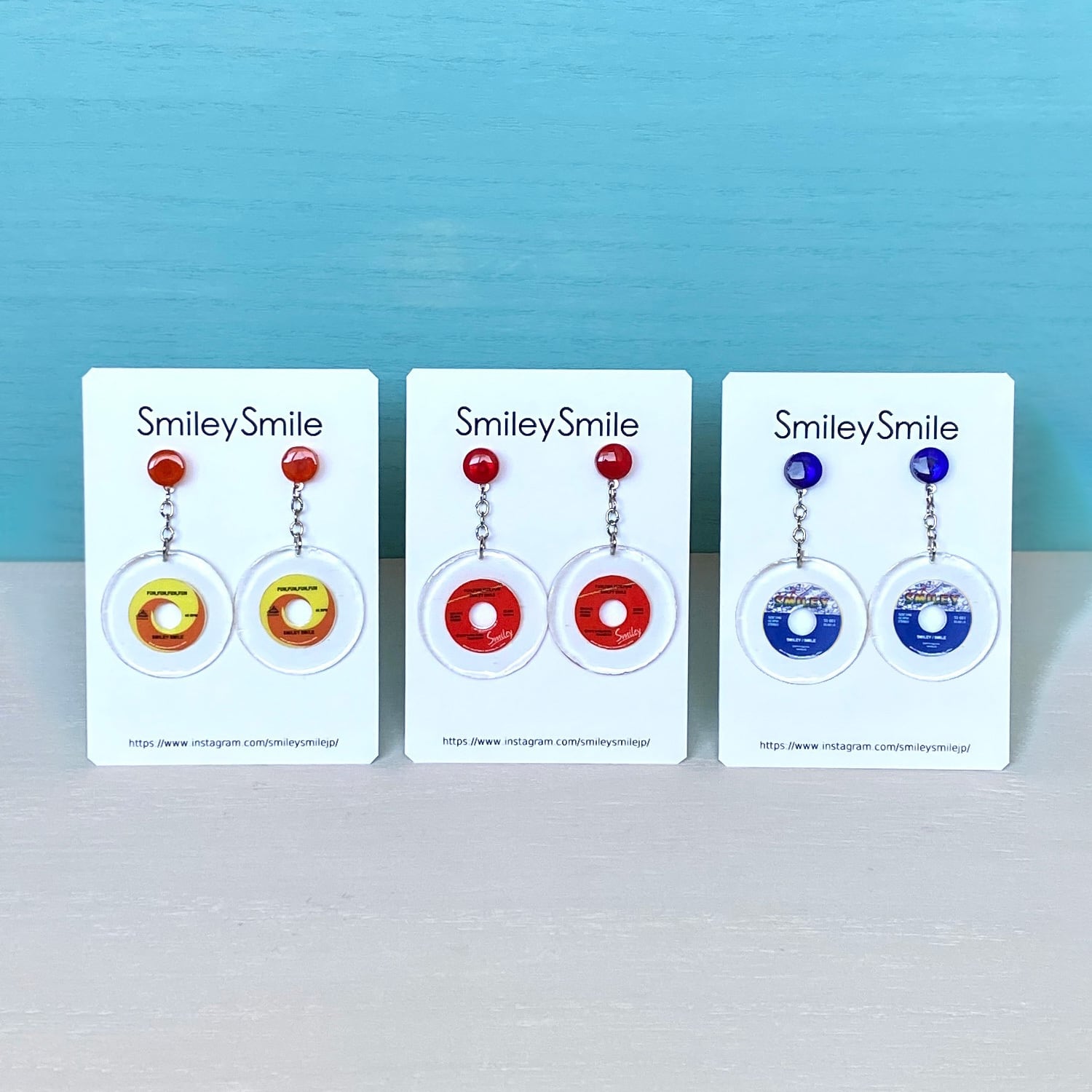 レコードピアス/イヤリング クリア×3colors【つやつや・飾り付き】