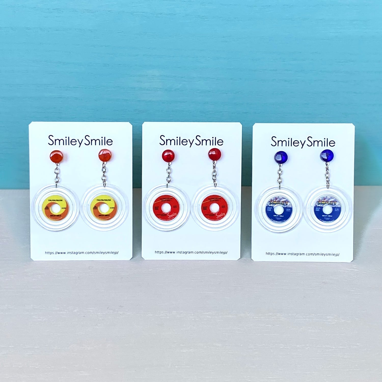 レコードピアス/イヤリング クリア×3colors【溝あり・飾り付き】